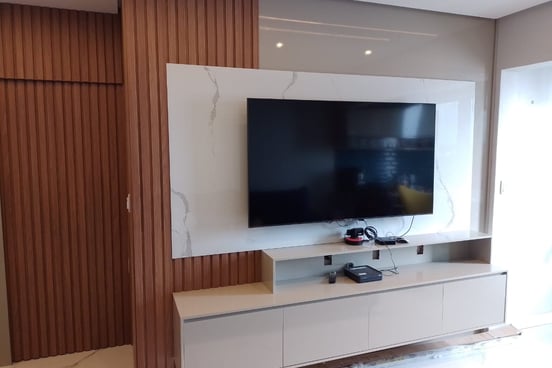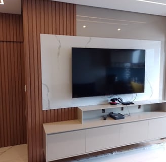 Móveis modulados e revestimentos vinílicos de alto padrão para ambientes sofisticados e contemporâneos.