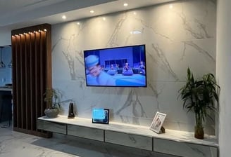 Acabamentos vinílicos de alto padrão, oferecendo estética refinada e durabilidade para projetos de interiores.